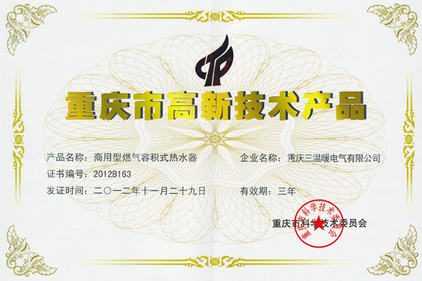 重慶三溫暖電氣有限公司創建于1995年,是專業從事中央熱水系統和廚衛電器產品的集研發、制造、銷售為一體的現代化企業,主營:燃氣容積式熱水器、商用熱水器的專業制造商,獲得了該行業國際標準--澳大利亞“AGA”認證并遠銷澳大利亞、新西蘭、印度、泰國、菲律賓、哥倫比亞、馬來西亞等國家和地區。